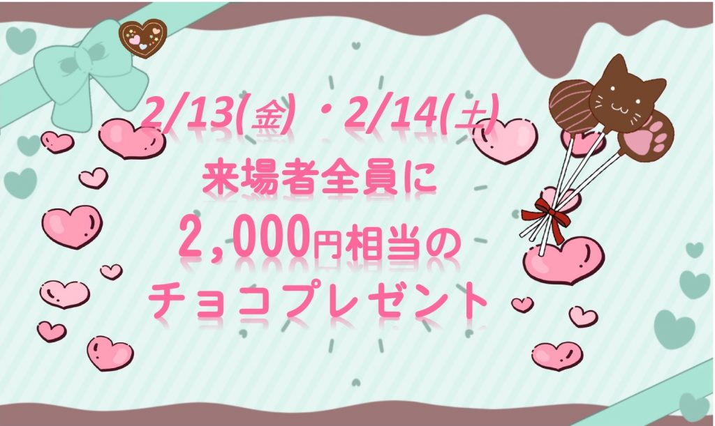 バレンタイン2/13、2/14来場者全員にチョコプレゼント