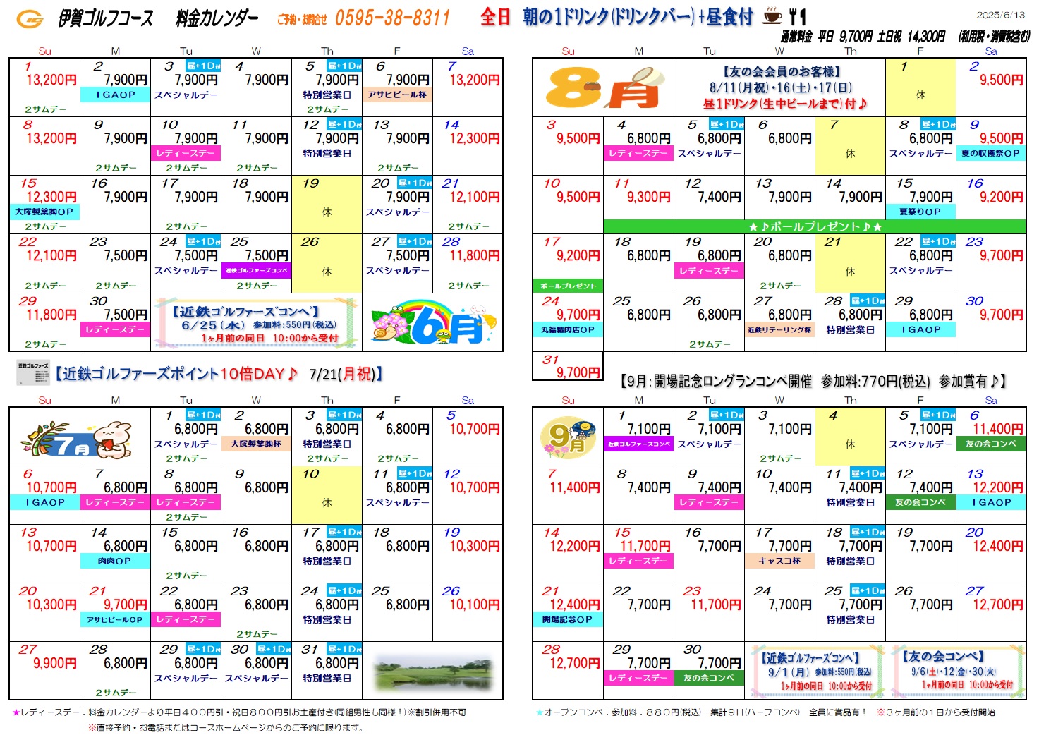 料金カレンダー(2025.12月~2026.3月)オトク日・2サムデーが確認いただけます。