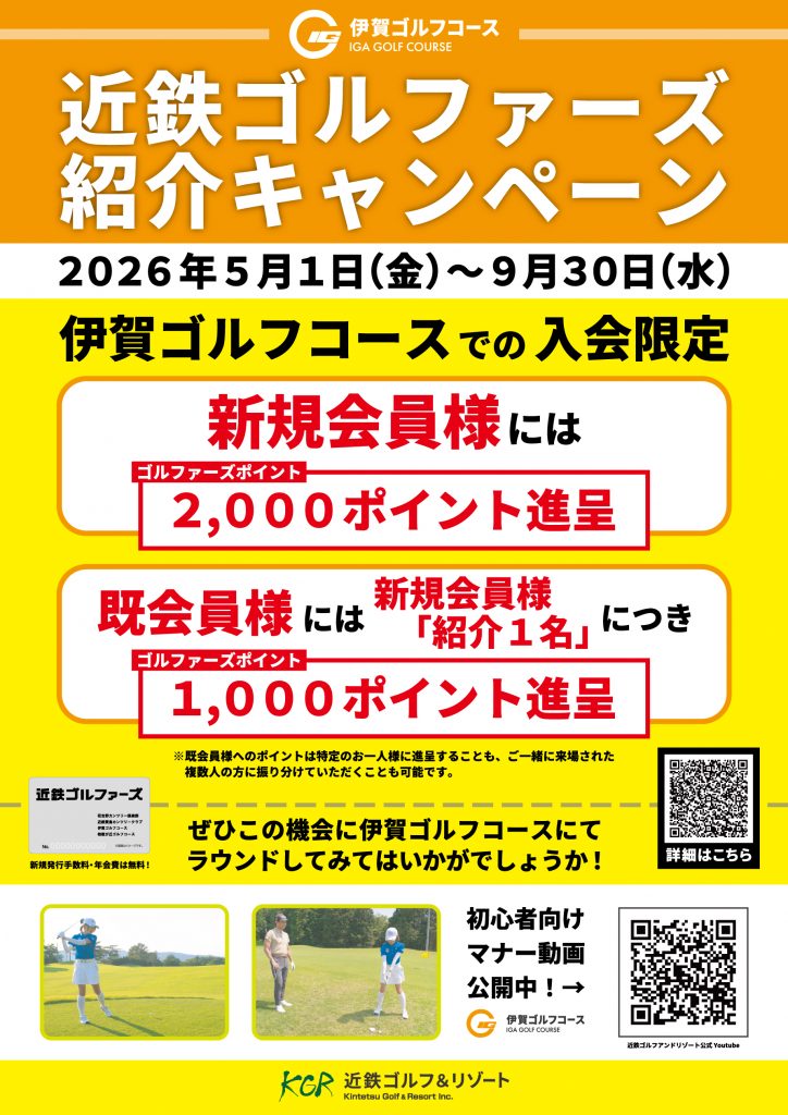 2026年5月1日(金)~9月30日(水)にて近鉄ゴルファーズ紹介キャンペーンを実施いたします!