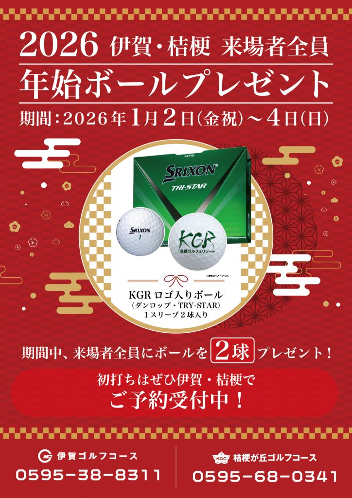 2026年1月2日(金祝)~4日(日)の期間中、来場されたお客様全員にダンロップのゴルフボールプレゼント!