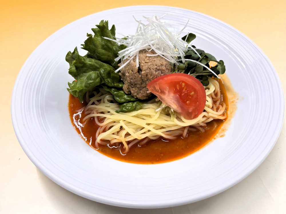 冷やし担々麺(豚ミンチ/白髪ねぎ/貝割れ/トマト/グリーンリーフ)
