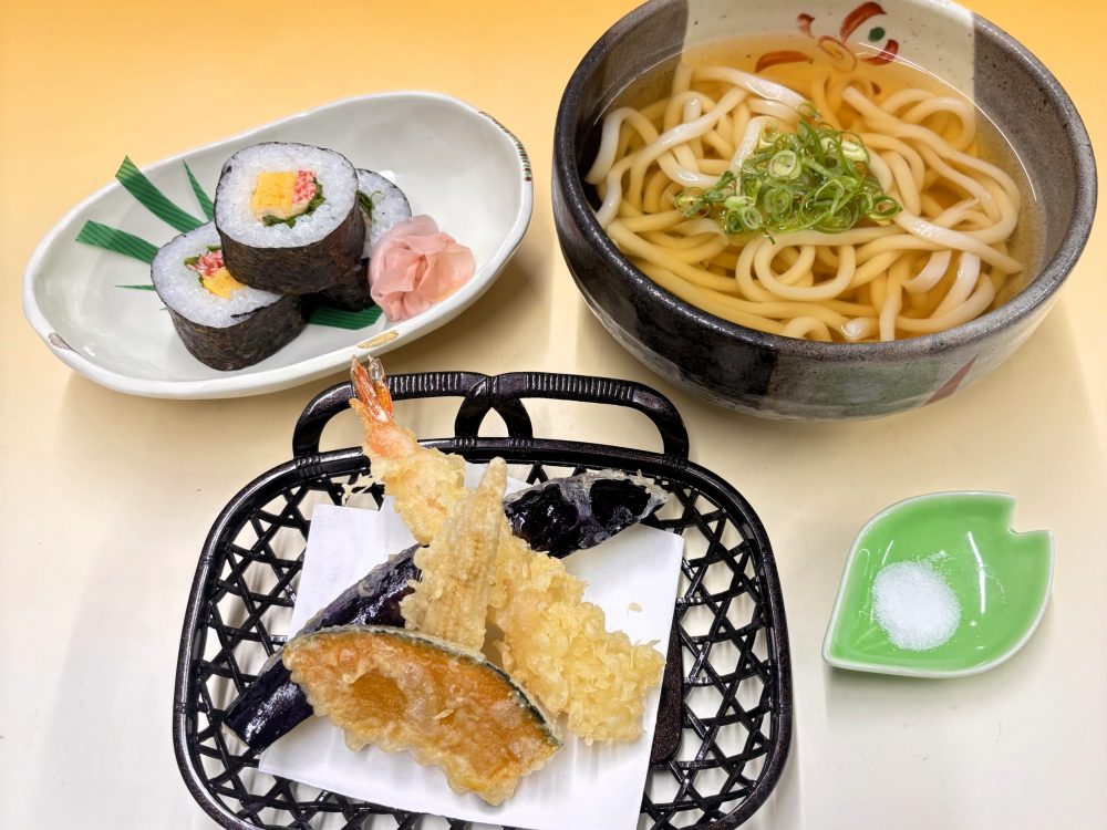 天婦羅うどん(海老/茄子/南瓜/ヤングコーン)/サラダ巻き
