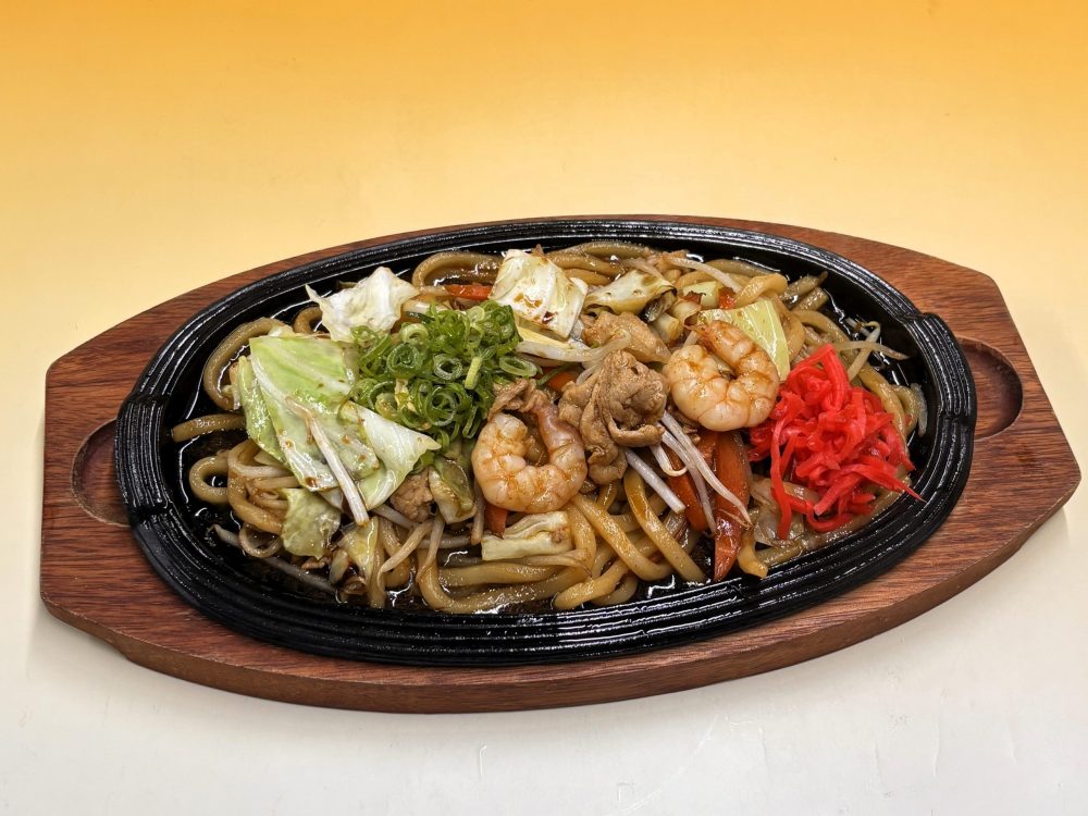 焼うどん(海老/豚肉/キャベツ/玉ねぎ/人参/もやし/刻み葱/紅生姜)