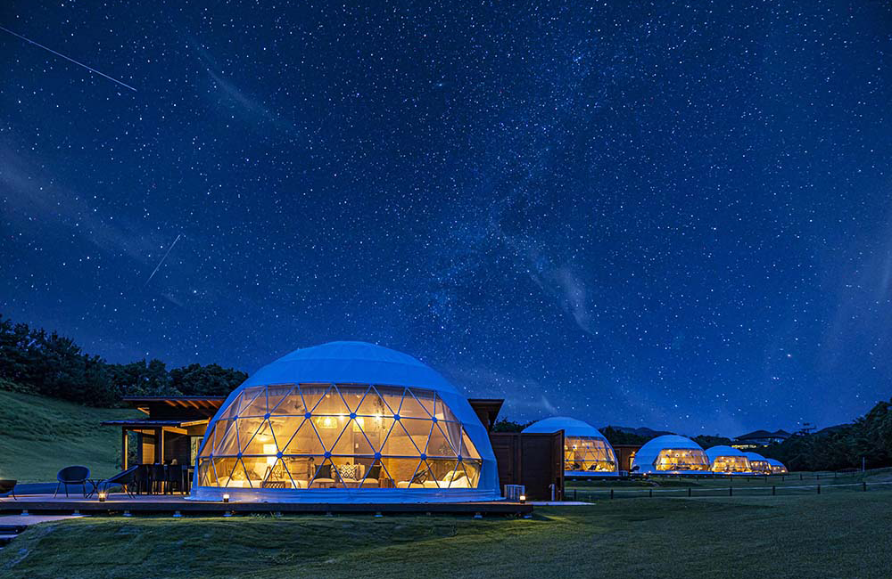 満天の星空の下、芝の上で裸足ですごせる「極上グランピング」
