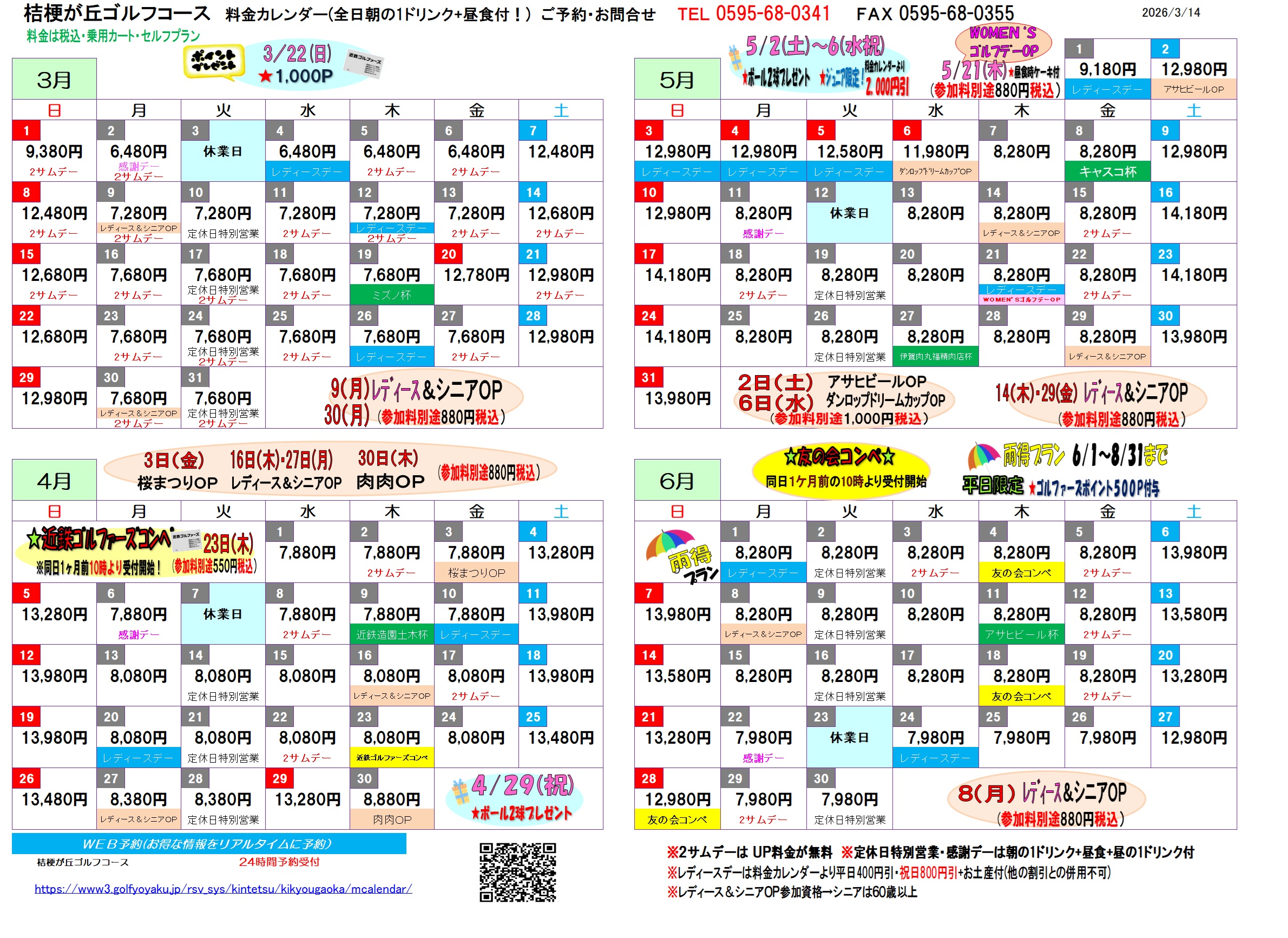 2026年度 月例競技会・OPコンペ日程表