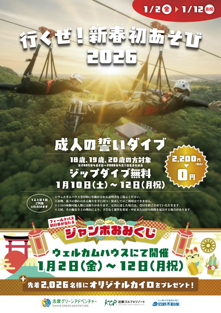 ◆2026年の新春を記念して、先着2,026名様に、「志摩グリーンアドベンチャー」オリジナルカイロをプレゼント!