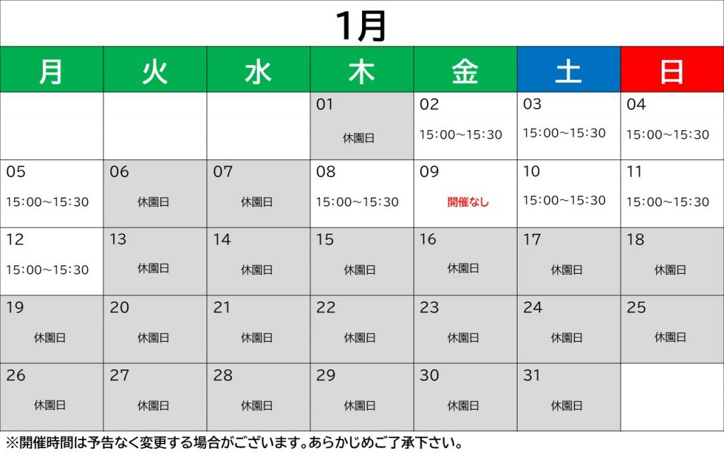 1月のジップダイブ撮影プラン対象日のご案内です!